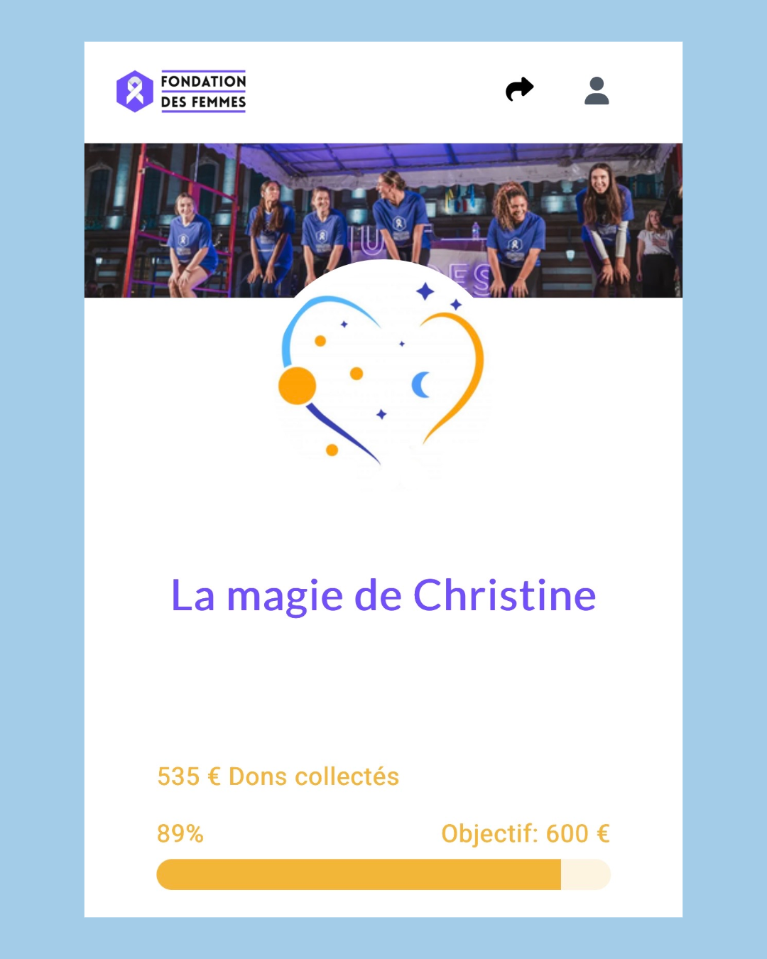Le 8 mars dernier, journée internationale des droits des femmes, a été lancée la cagnotte de la magie de Christine au bénéfice de la fondation des femmes.